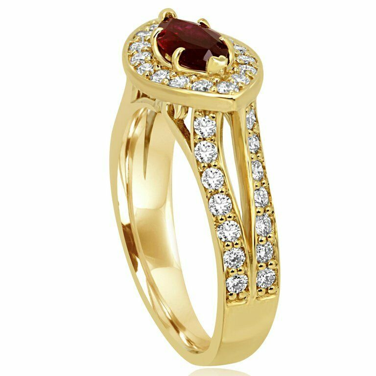 2ct Marquise Cut Pink Ruby Engagement Ring Halo Split Shank 14k Yellow Gold Over