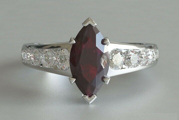 2ct Marquise Cut Pink Ruby Engagement Ring Solitaire Round Accent 14k White Gold Over