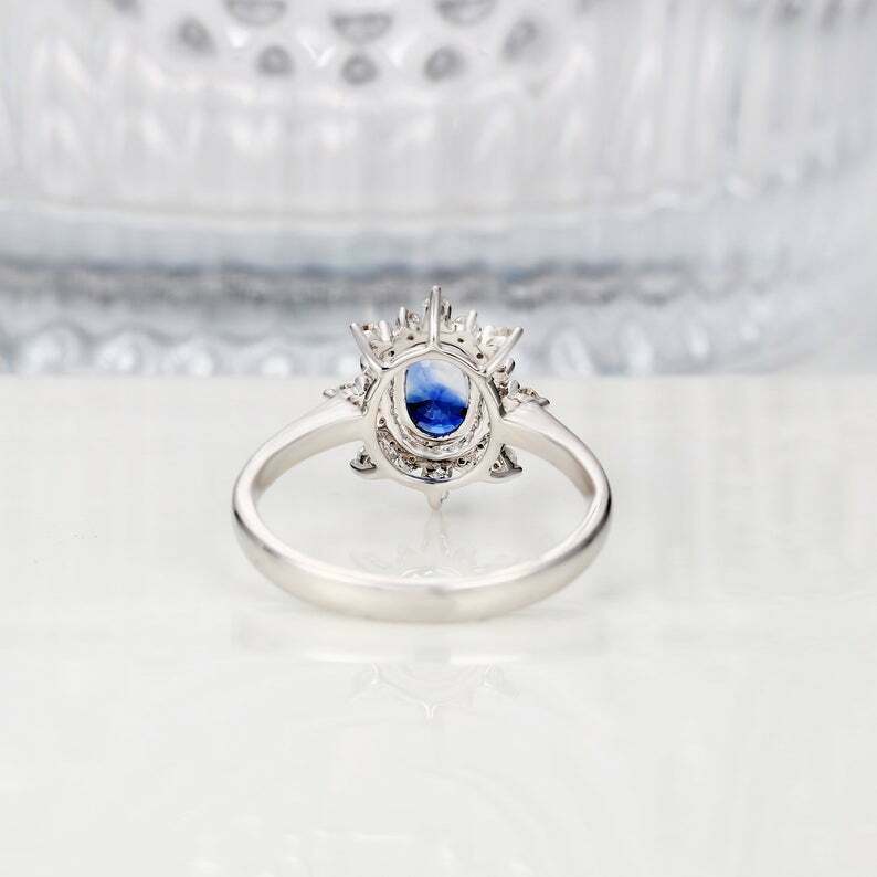 2ct Oval Cut Blue Sapphire Engagement Ring Diamond Halo Flower 14k White Gold Finish