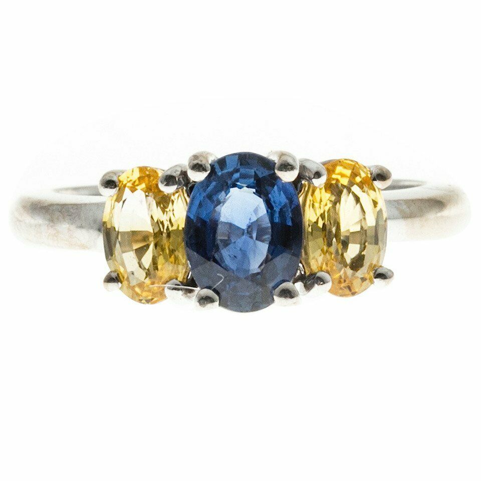 2ct Oval Cut Blue Sapphire Engagement Ring Trilogy Solitaire 14k White Gold Over
