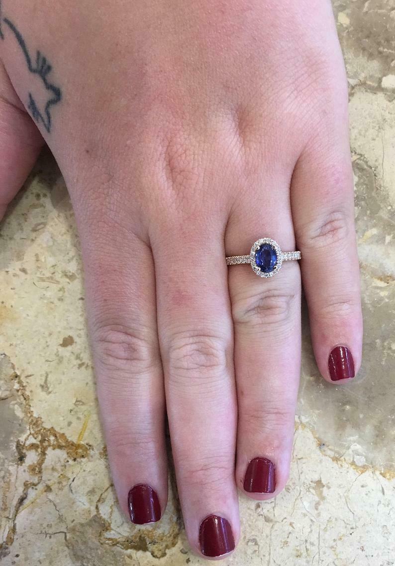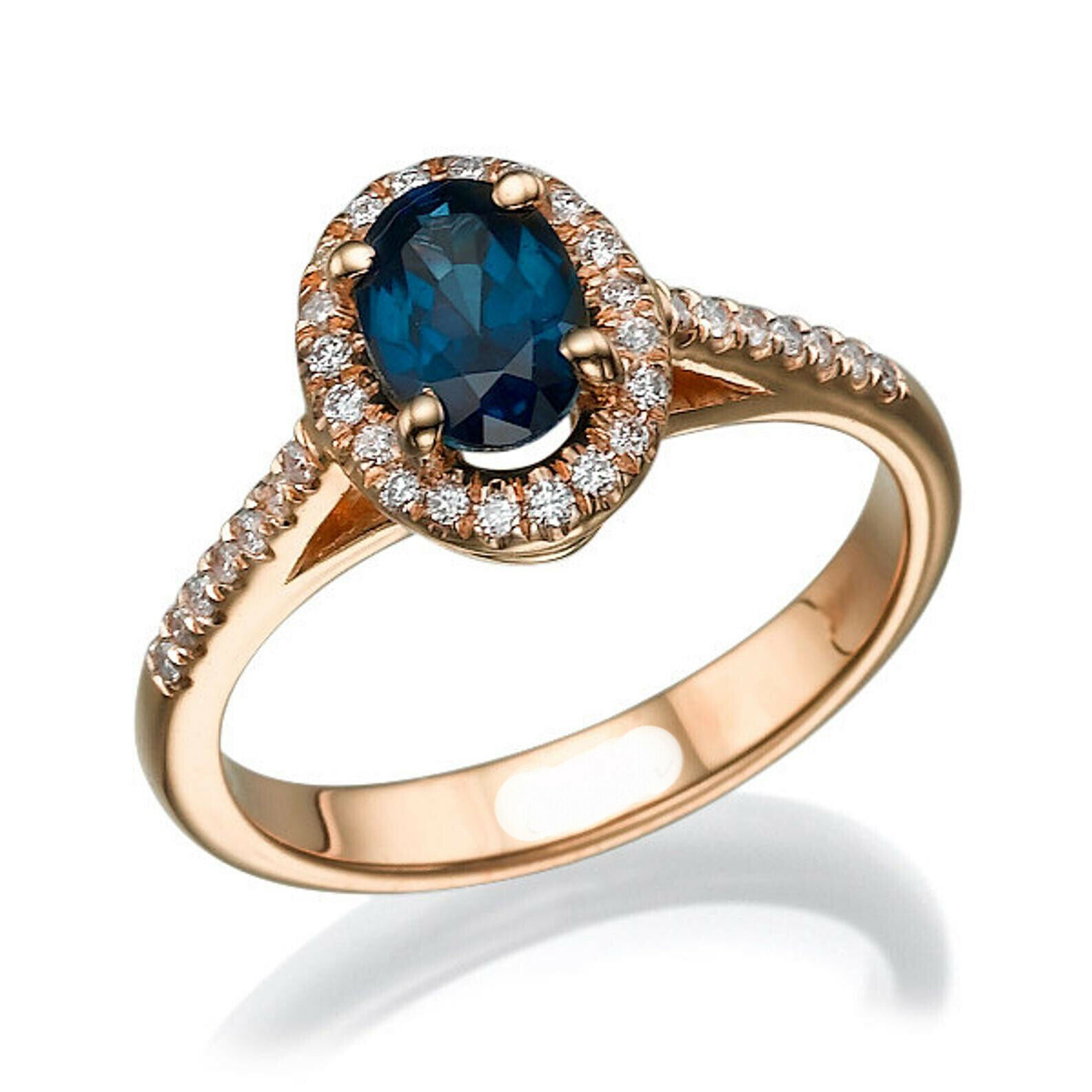 2ct Oval Cut Blue Sapphire Halo Solitaire with Accent Ring 14k Rose Gold Finish