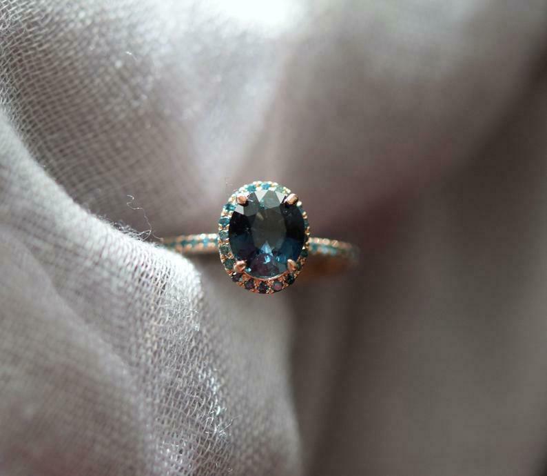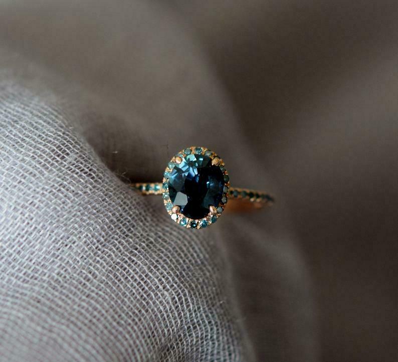 2ct Oval Cut London Blue Topaz Engagement Ring Halo Solitaire 14k Rose Gold Over