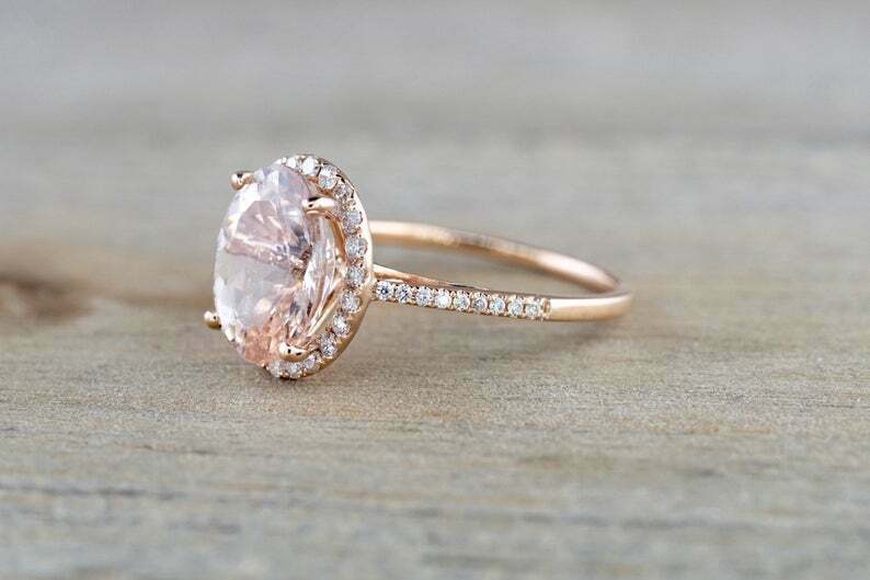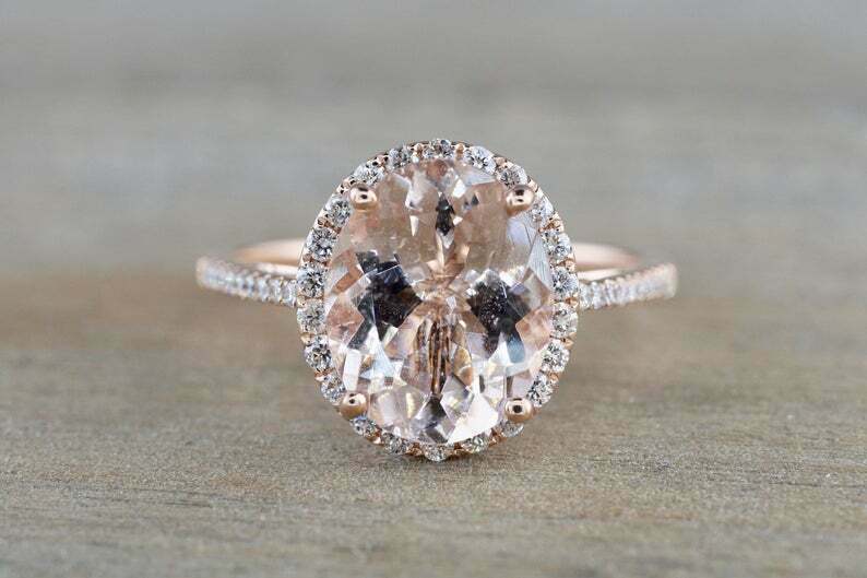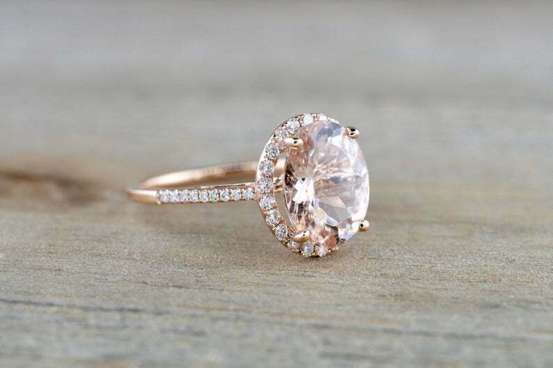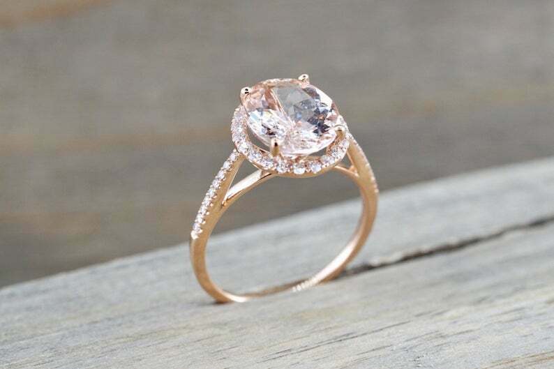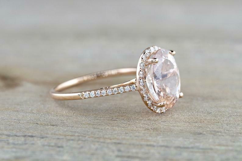 2ct Oval Cut Morganite Engagement Ring 14k Rose Gold Finish Diamond Accents Halo