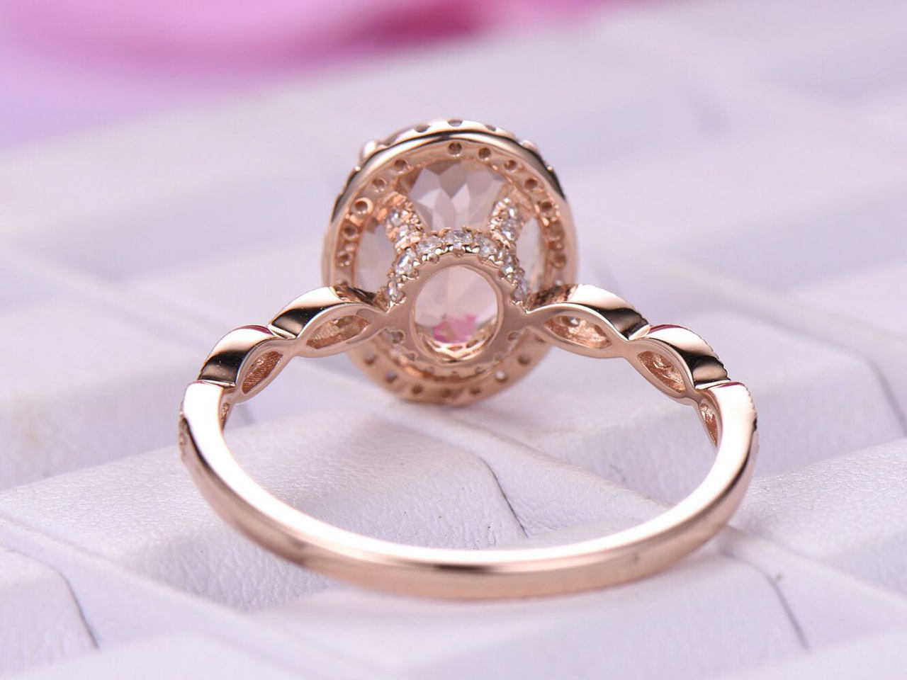 2ct Oval Cut Morganite Engagement Ring Halo Diamond Accent 14k Rose Gold Finish