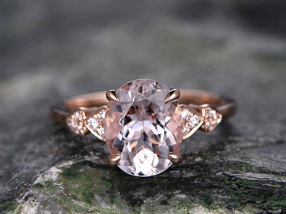 2ct Oval Cut Peach Morganite Engagement Ring Diamond Accent 14k Rose Gold Finish