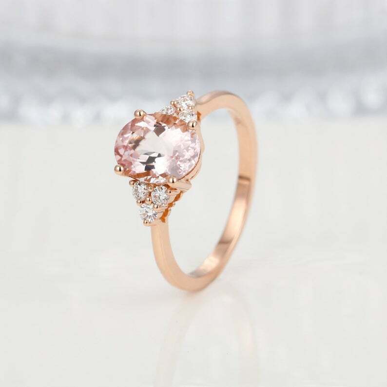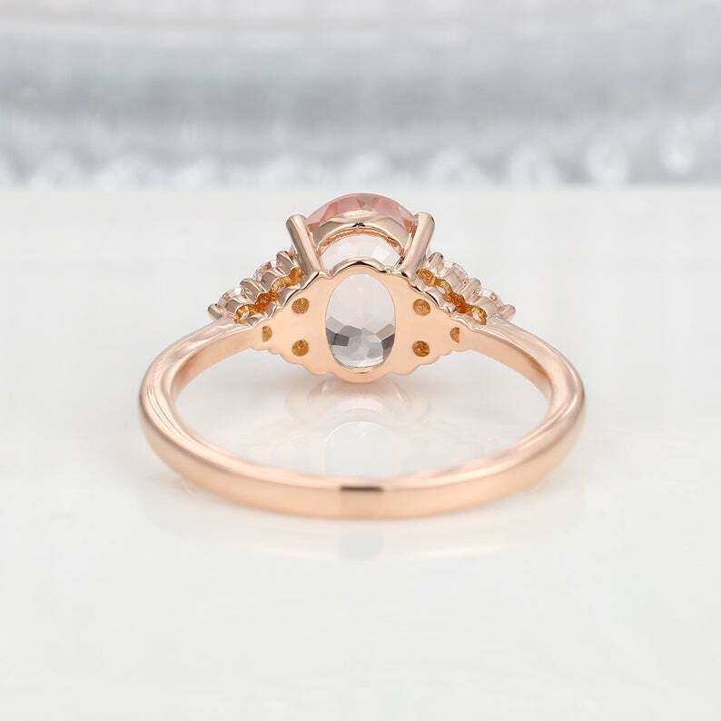 2ct Oval Cut Peach Morganite Solitaire with Round Accent Ring 14k Rose Gold Over