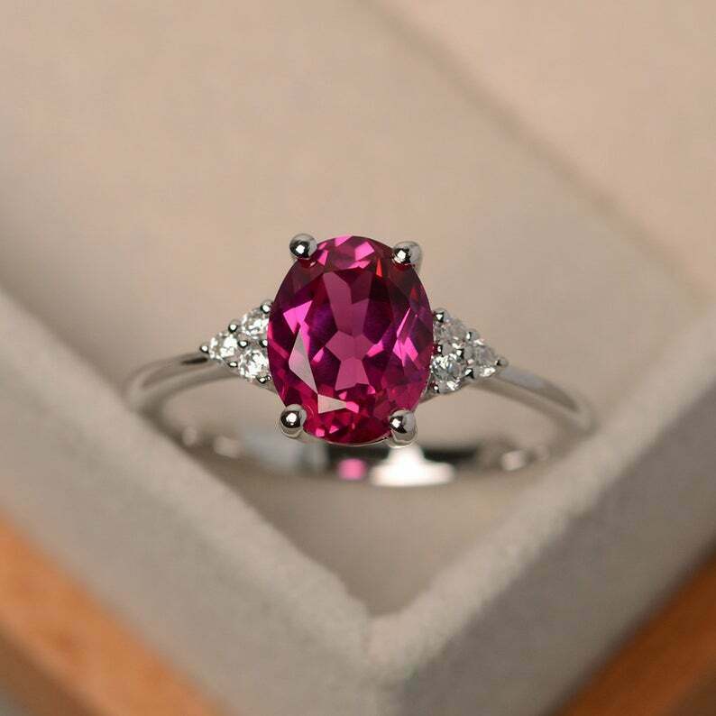 2ct Oval Cut Pink Ruby Engagement Ring Petite Round Accent 14k White Gold Finish