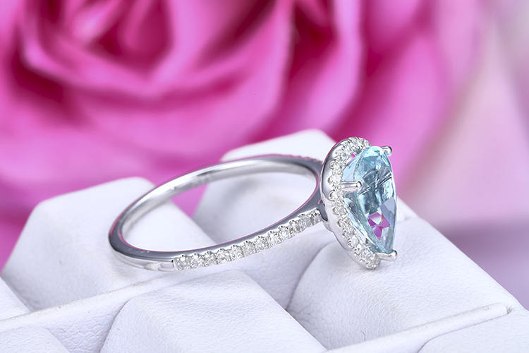 2ct Pear Blue Aquamarine Engagement Ring Diamond Halo Women 14k White Gold Over