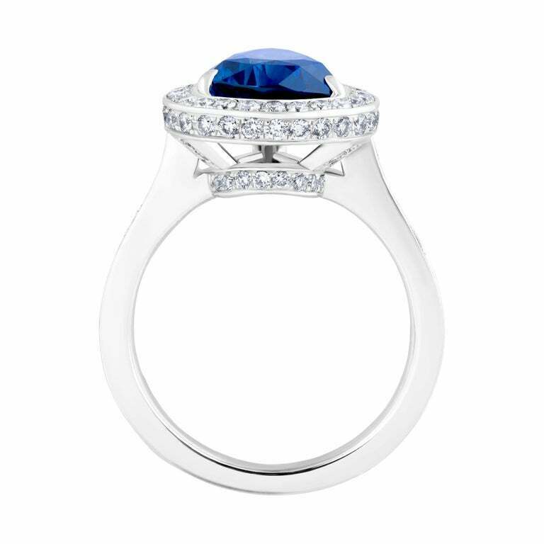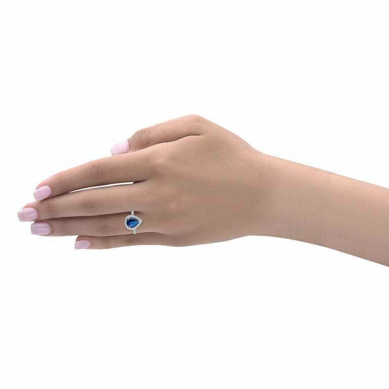 2ct Pear Cut Blue Sapphire Engagement Ring Halo 14k White Gold Over Round Accent