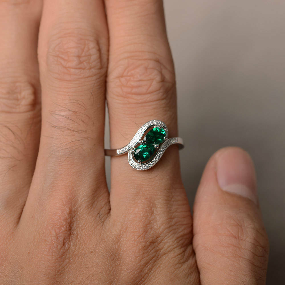 2ct Pear Cut Green Emerald Swirl Unique Engagement Ring 14k White Gold Finish