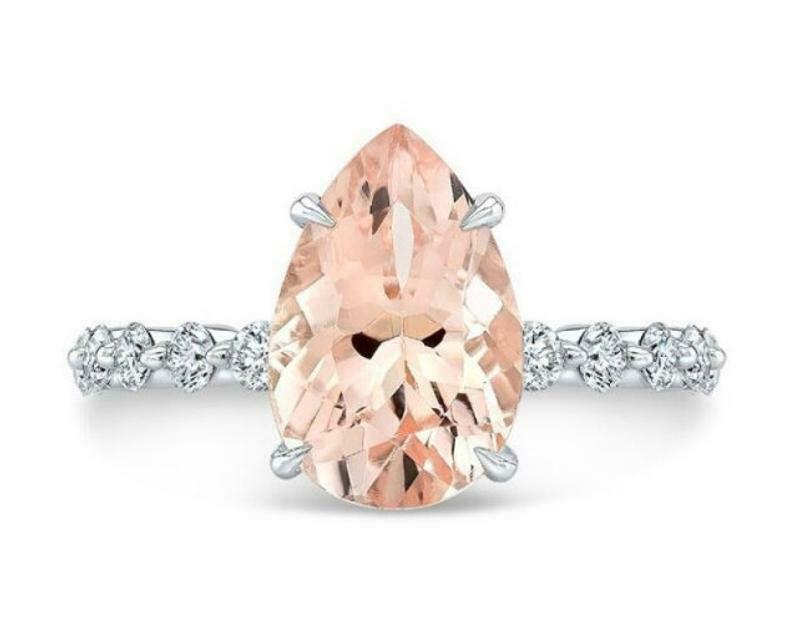 2ct Pear Cut Morganite Engagement Ring 14k White Gold Over Solitaire with Accent