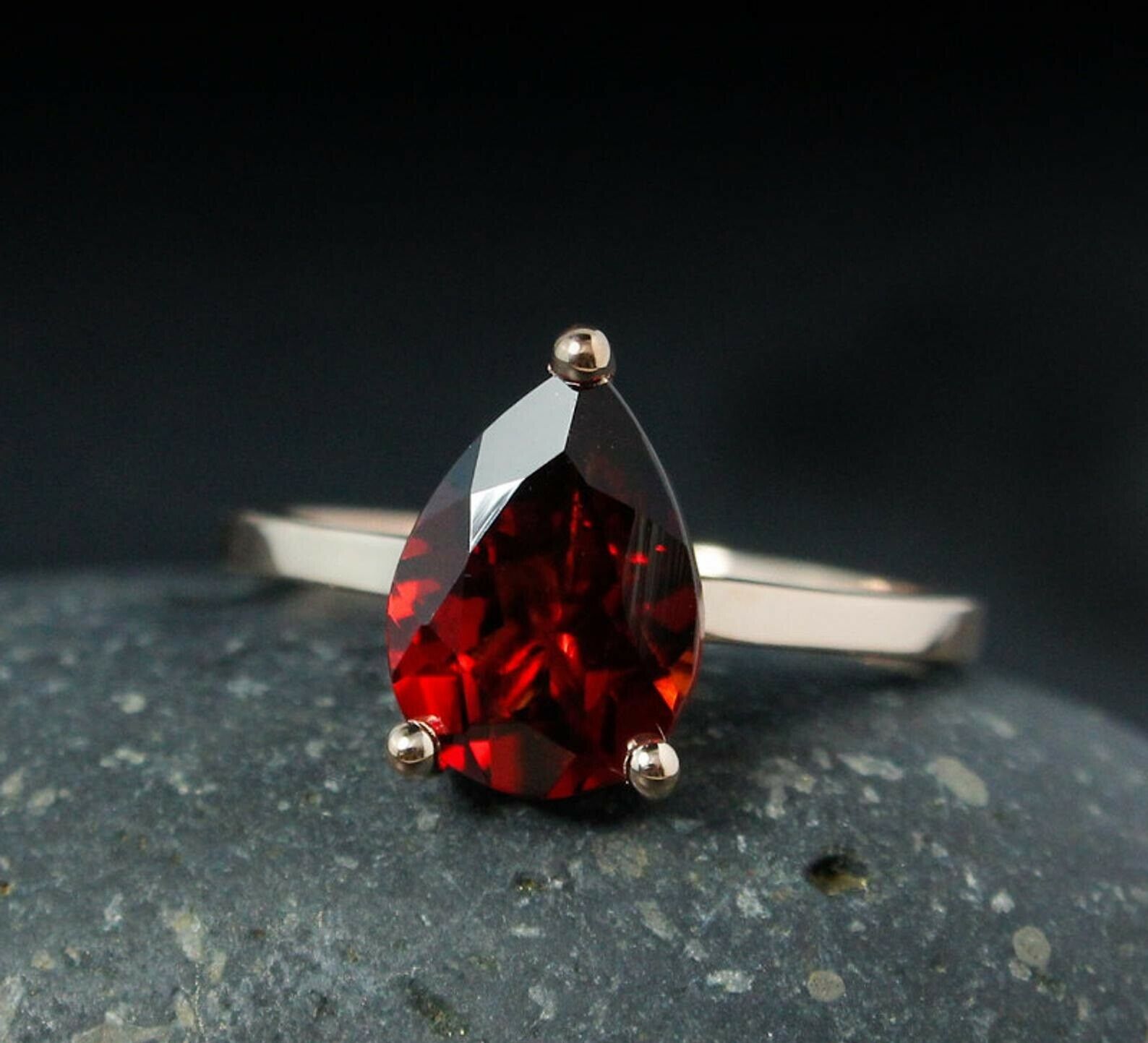 2ct Pear Cut Red Garnet Solitaire Women Engagement Ring 14k Yellow Gold Finish