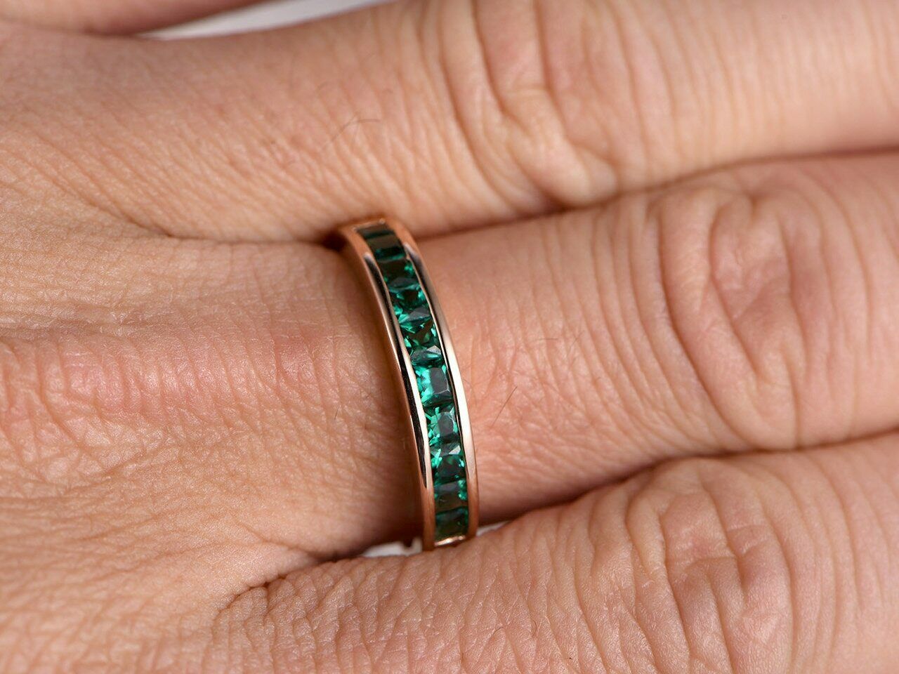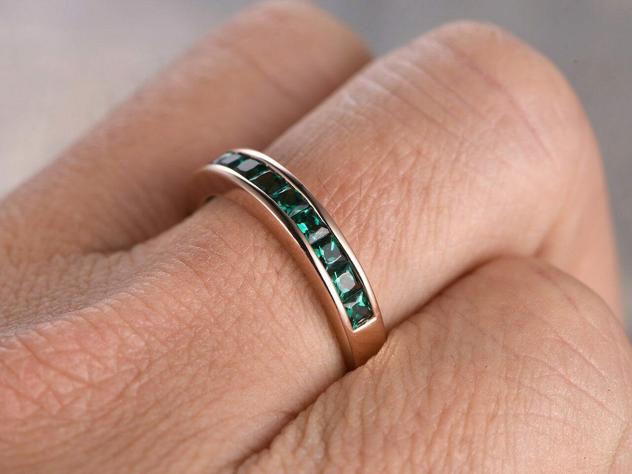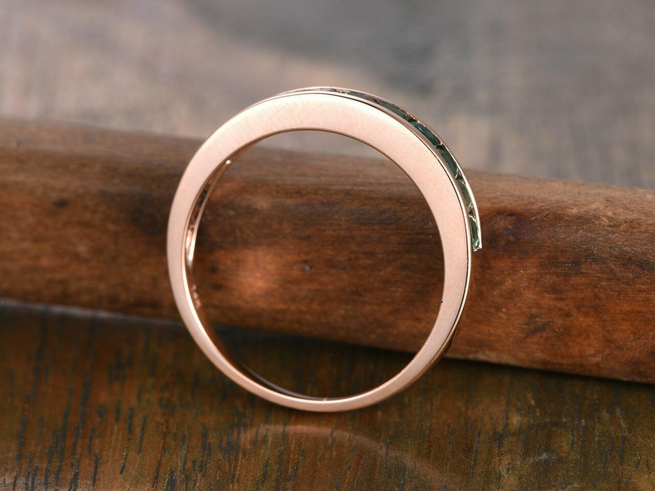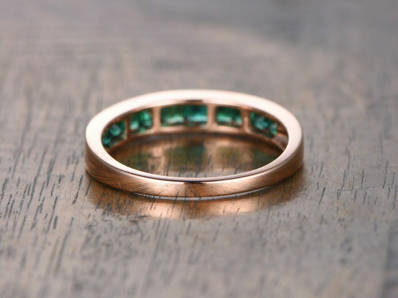 2ct Princess Cut Green Emerald Channel Set Half Eternity Band 14k Rose Gold Over