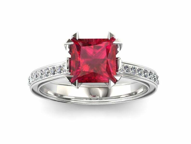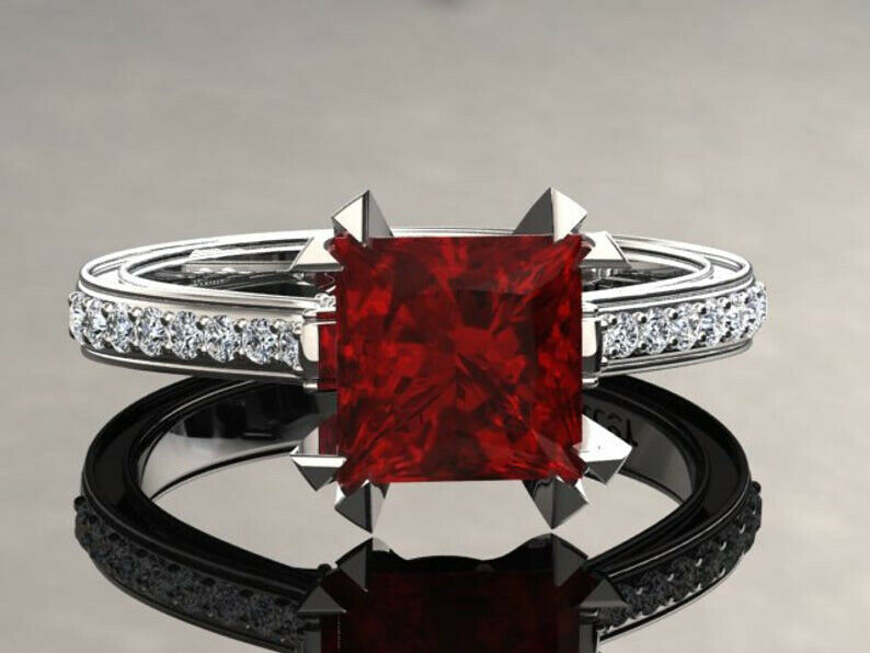 2ct Princess Cut Pink Ruby Bridal Set Band Engagement Ring 18k White Gold Finish