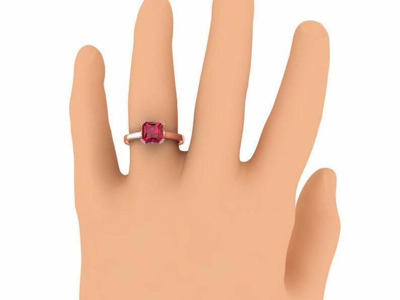 2ct Princess Cut Pink Ruby Engagement Ring Solitaire Women 18k Rose Gold Finish