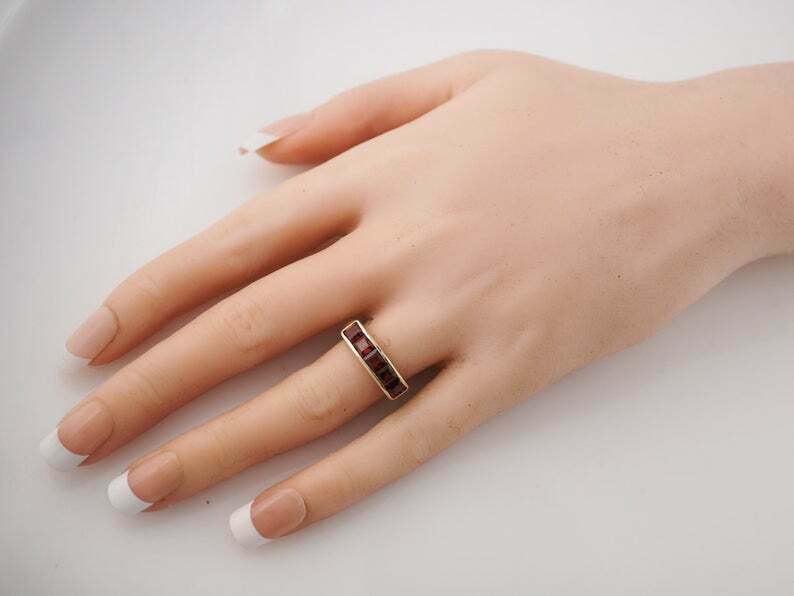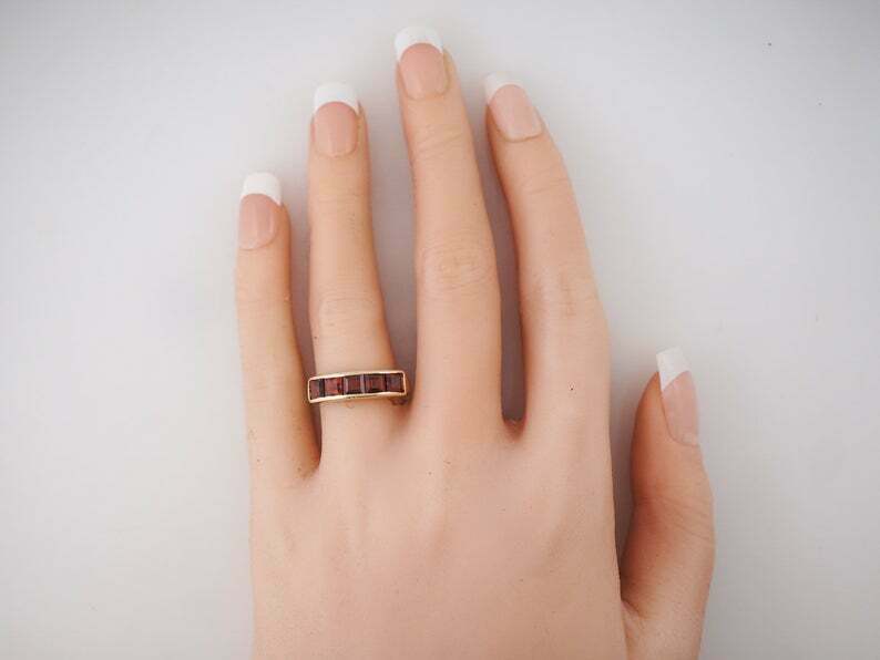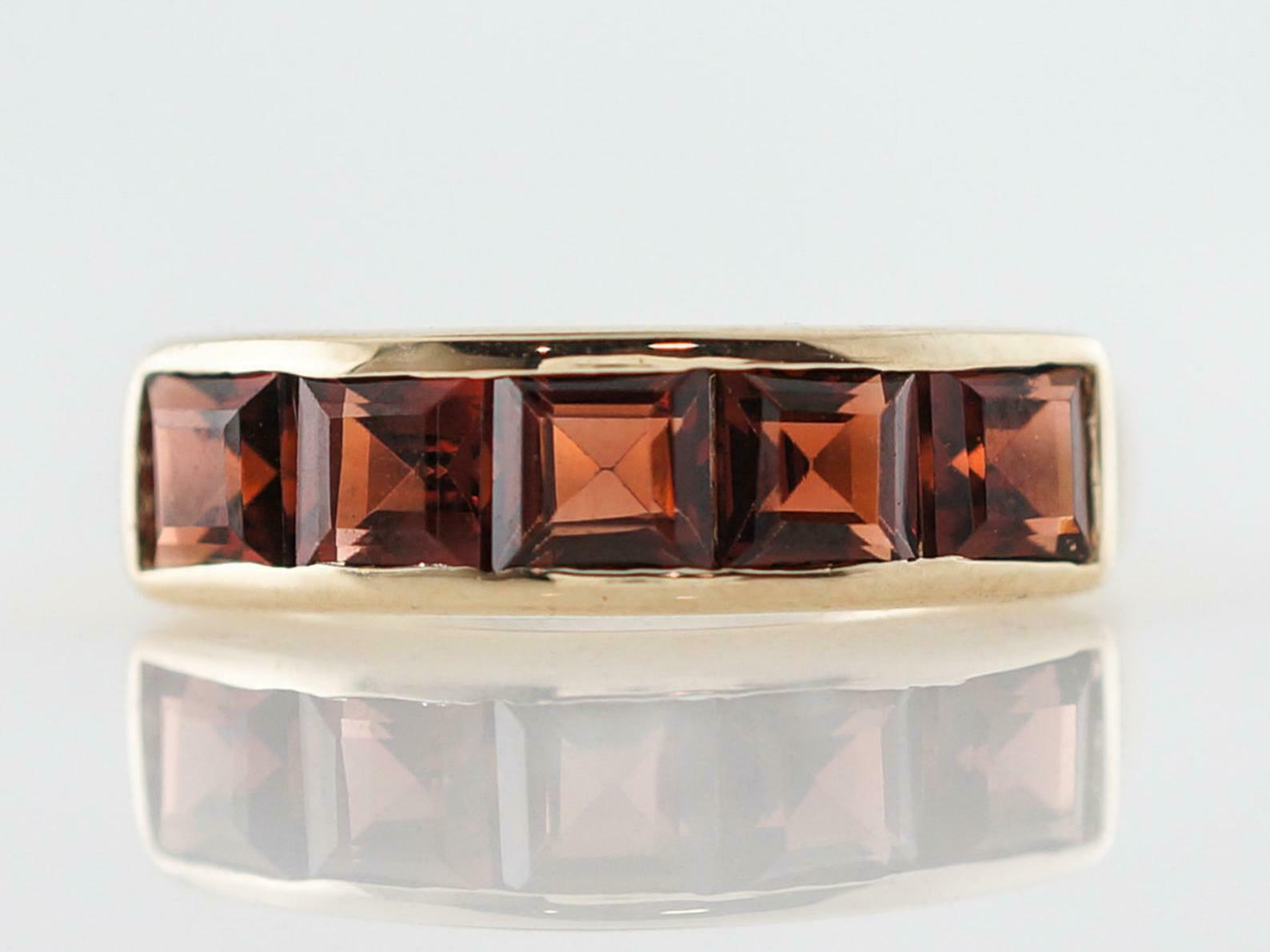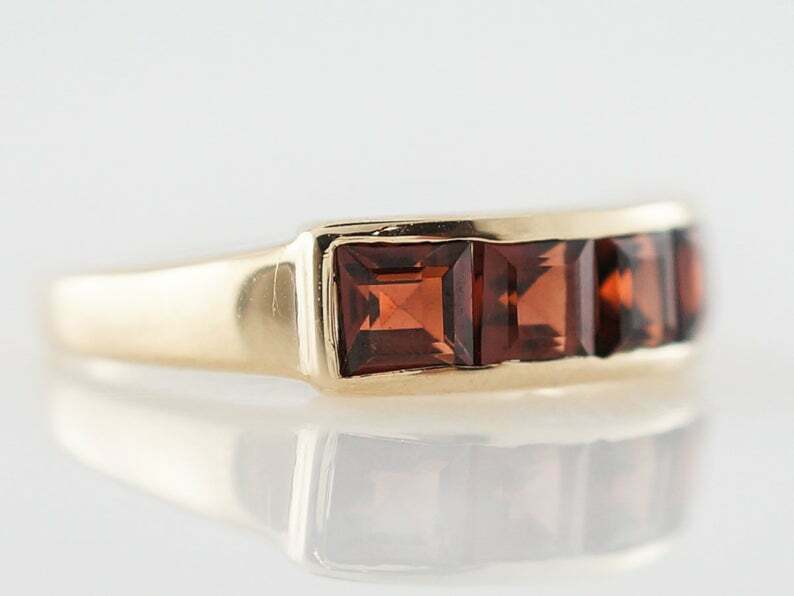 2ct Princess Cut Red Garnet Four Stone Half Eternity Band 14k Yellow Gold Finish