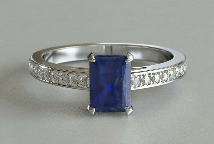 2ct Radiant Cut Blue Sapphire Engagement Ring Diamond Accent 14k White Gold Over