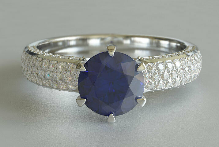 2ct Round Cut Blue Sapphire Engagement Ring Cluster Accents 14k WhiteGold Finish