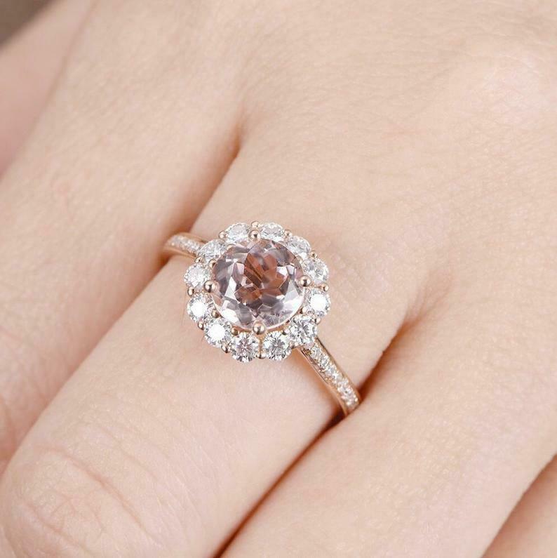 2ct Round Cut Morganite Engagement Ring Halo Diamond Floral 14k Rose Gold Finish