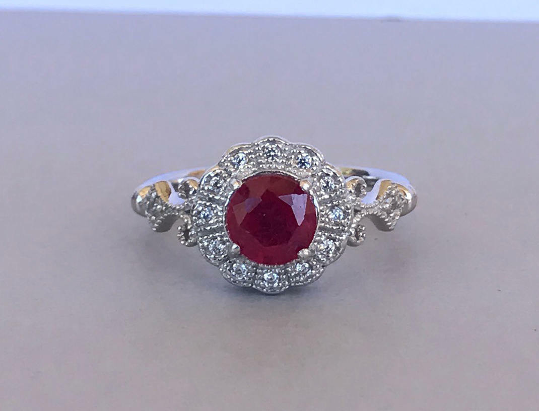 2ct Round Cut Pink Ruby Art Deco Vintage Engagement Ring 14k White Gold Finish