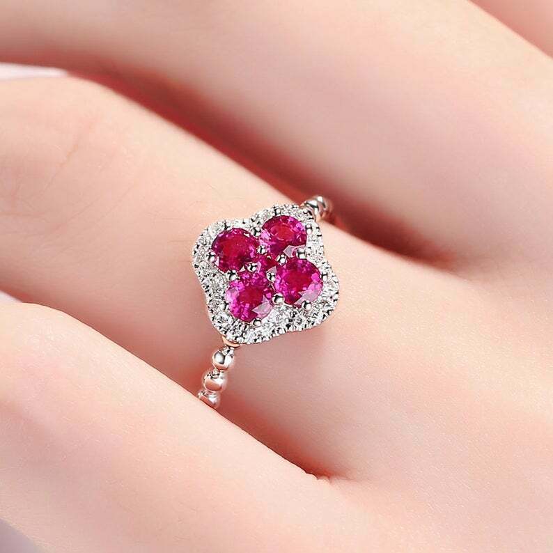 2ct Round Cut Pink Ruby Diamond Halo Flower Engagement Ring 14k WhiteGold Finish
