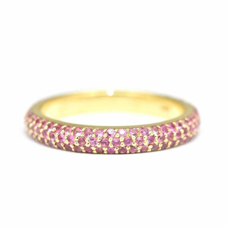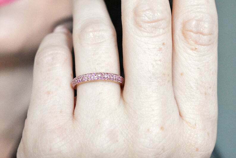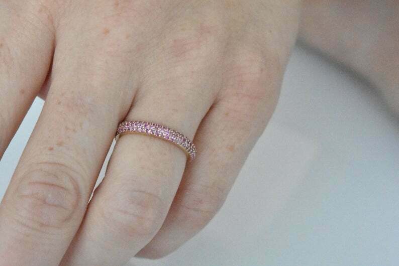 2ct Round Cut Pink Sapphire Three Row Eternity Wedding Band 14k Yellow Gold Over