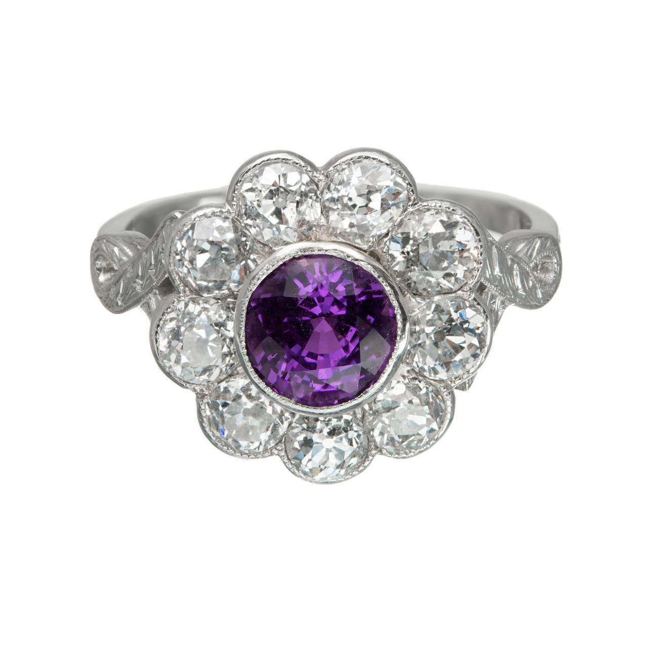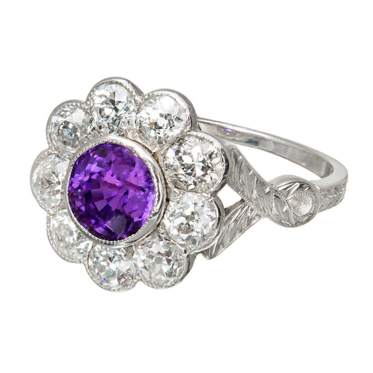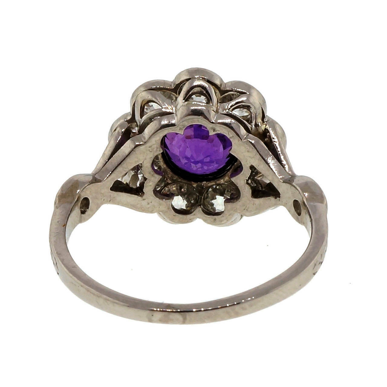 2ct Round Cut Purple Amethyst Engagement Ring Halo Vintage 14k White Gold Finish