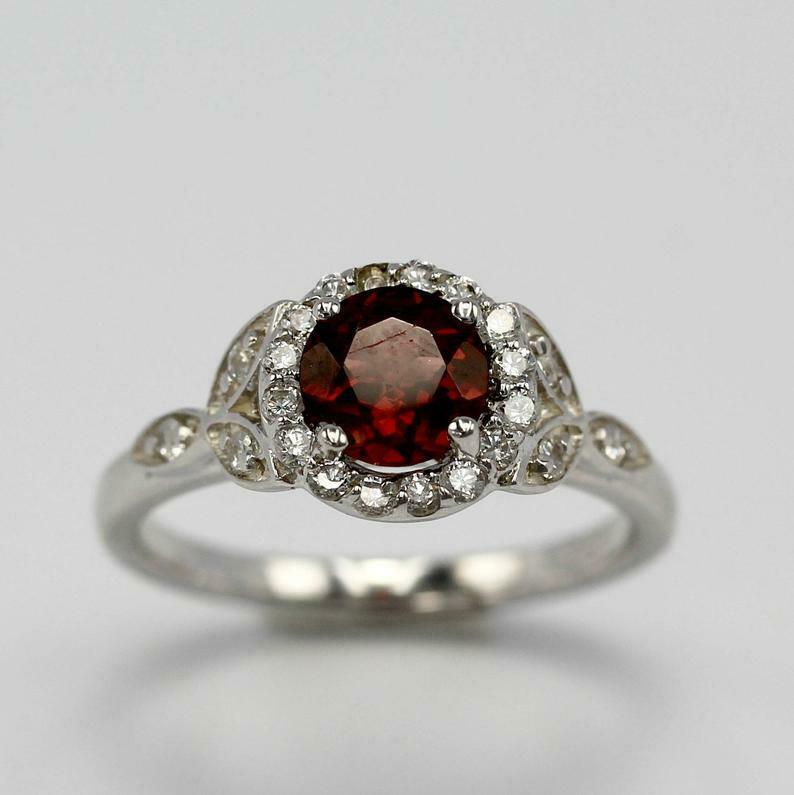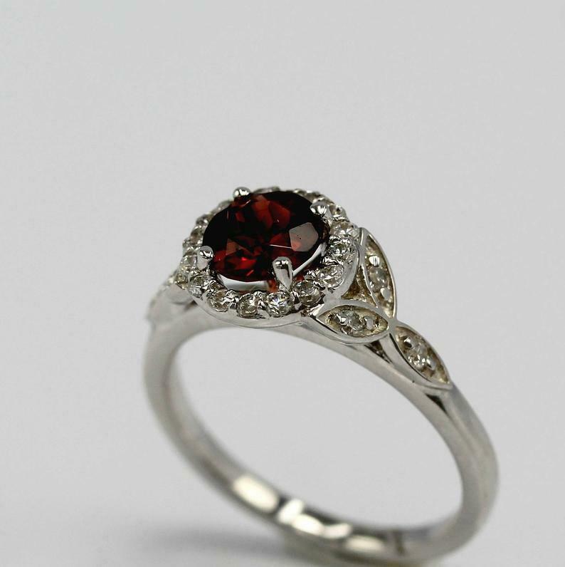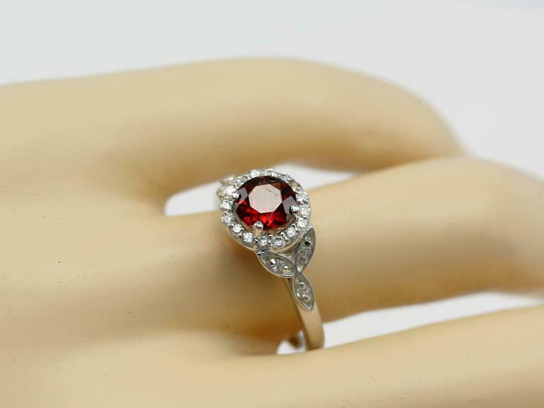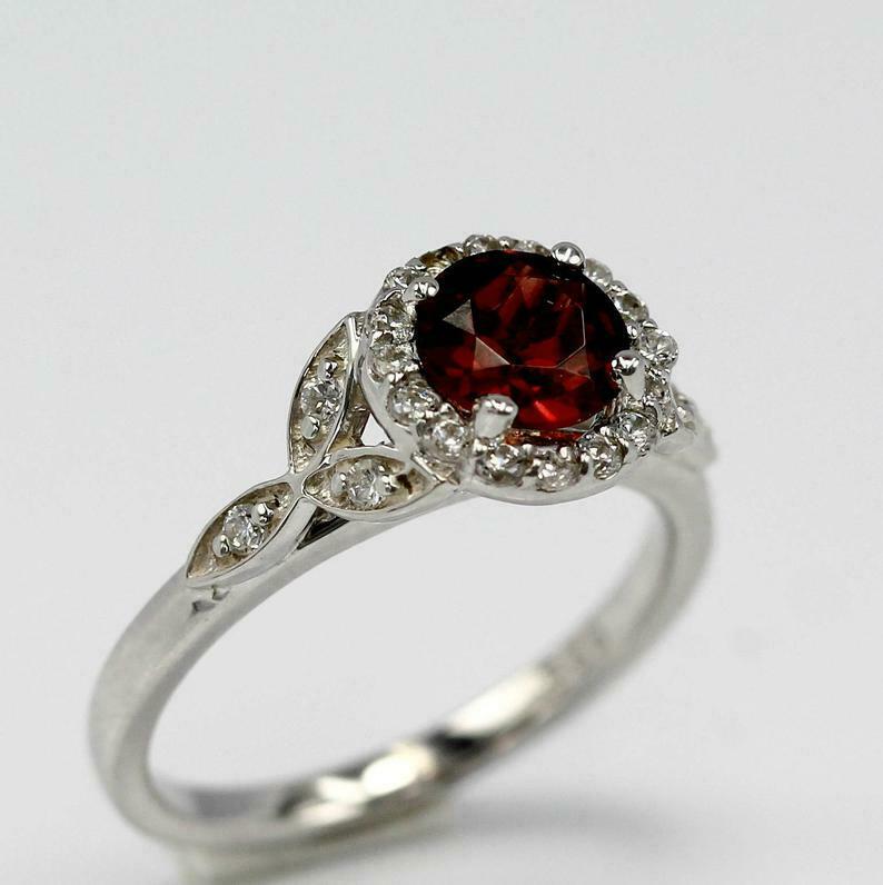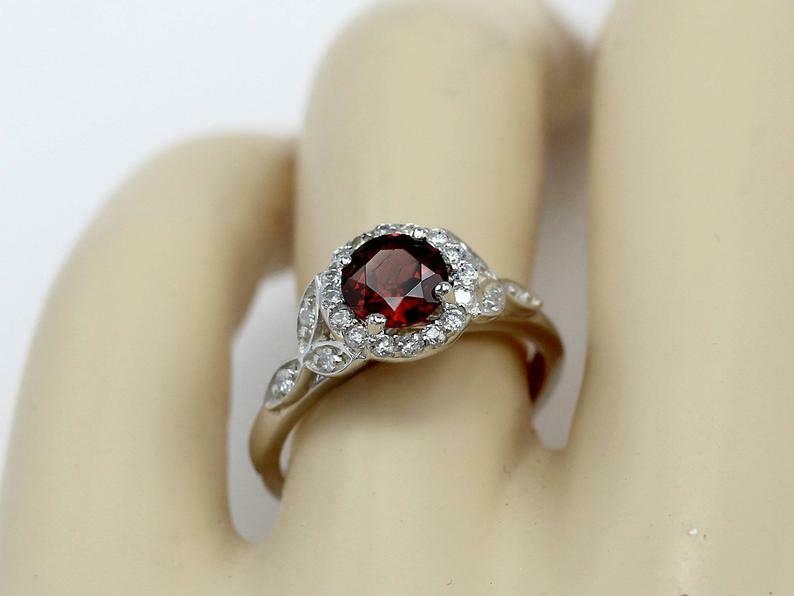 2ct Round Cut Red Garnet Engagement Ring Diamond Floral Halo 14k White Gold Over