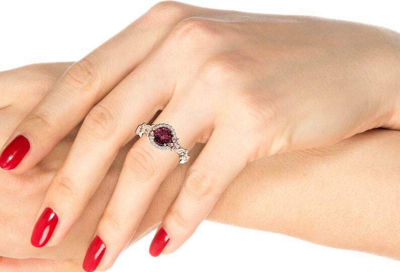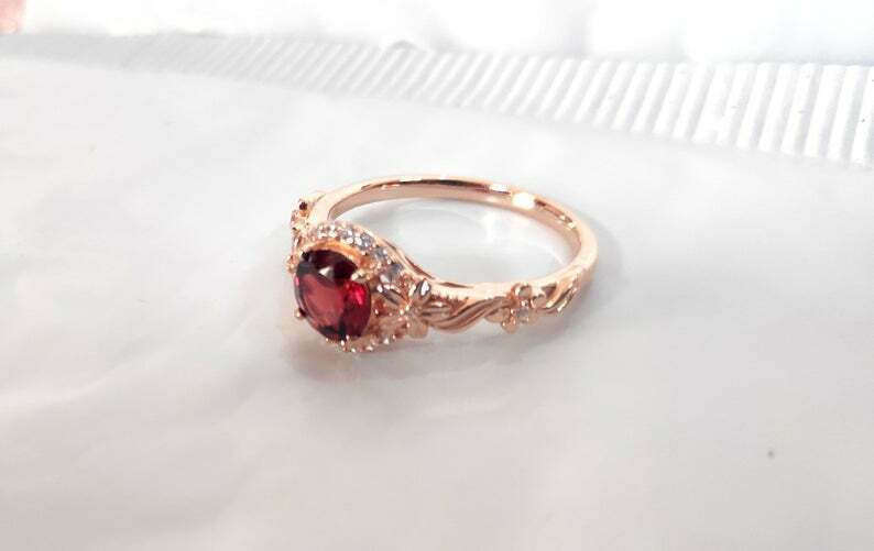 2ct Round Cut Red Garnet Floral Stylish Solitaire Accent Ring 14k Rose Gold Over