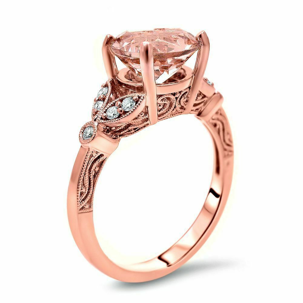 2Ct Round Peach Morganite Milgrain Filigree Solitaire Ring 14K Rose Gold Finish
