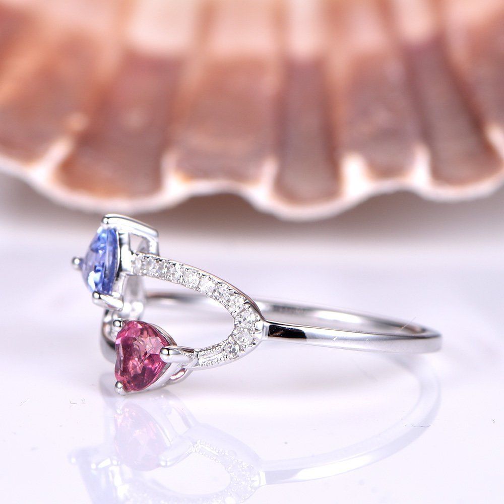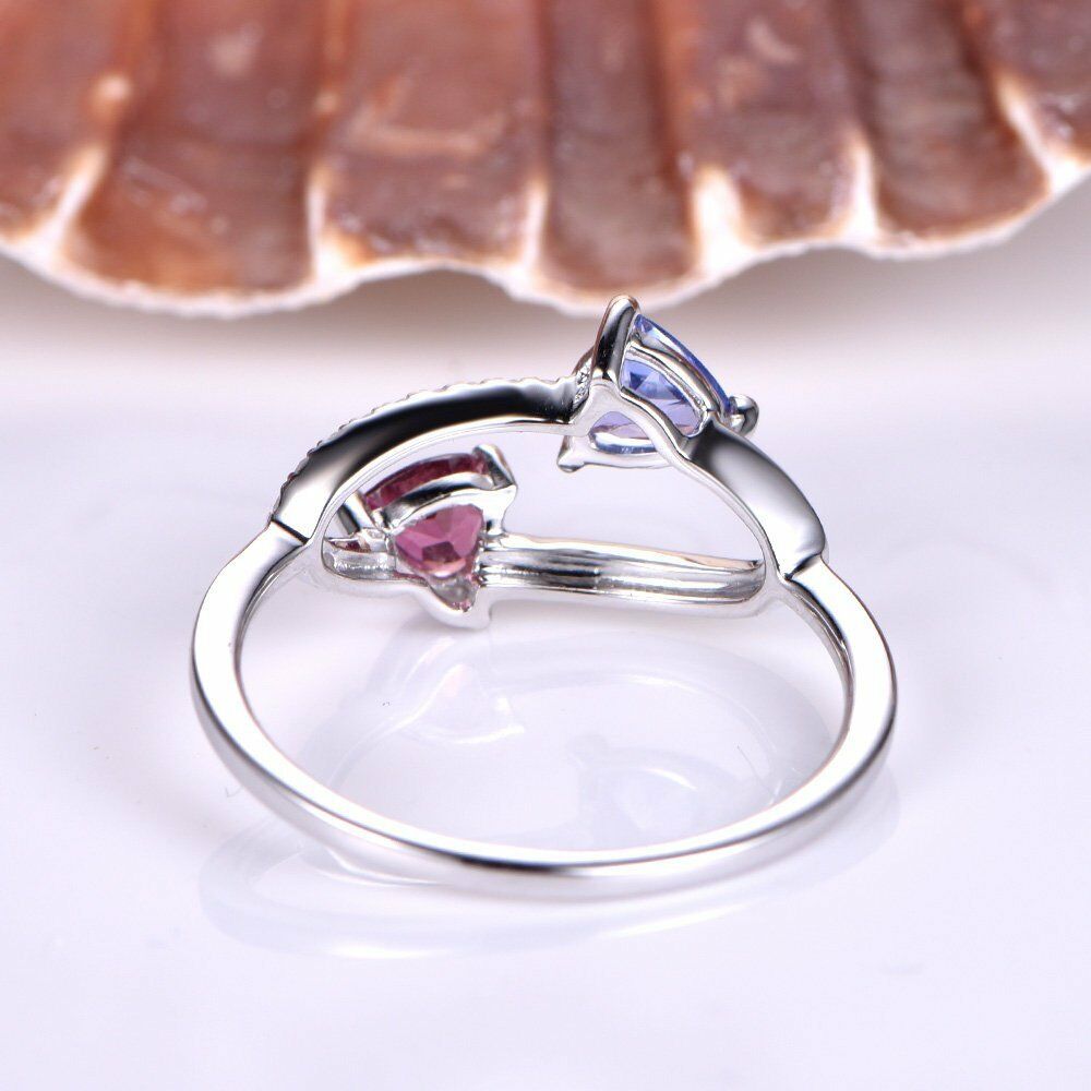 2ct Trillion Blue Tanzanite Pink Ruby Unique Engagement Ring 14k White Gold Over