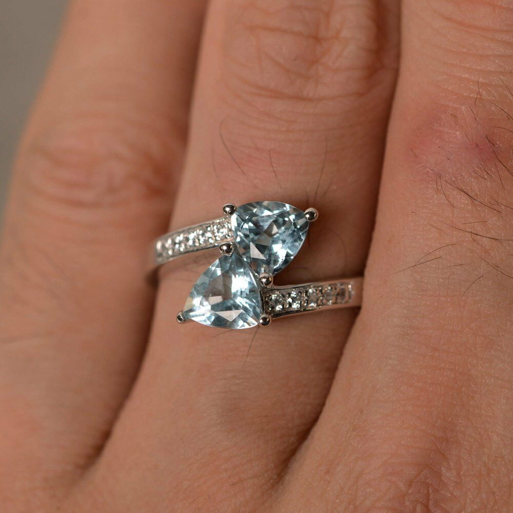 2ct Trillion Cut Blue Aquamarine Double Stone Engagement Ring 14k WhiteGold Over