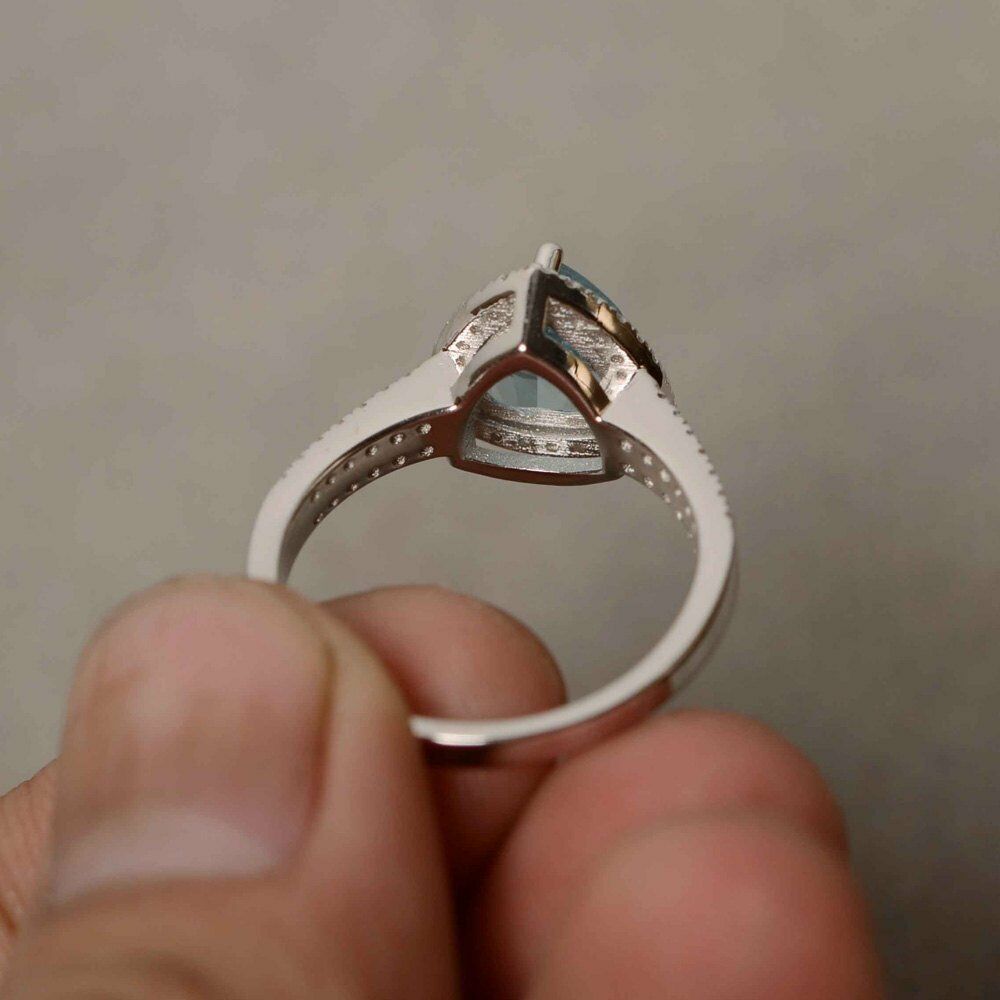 2ct Trillion Cut Blue Aquamarine Promise Engagement Ring 14k White Gold Finish