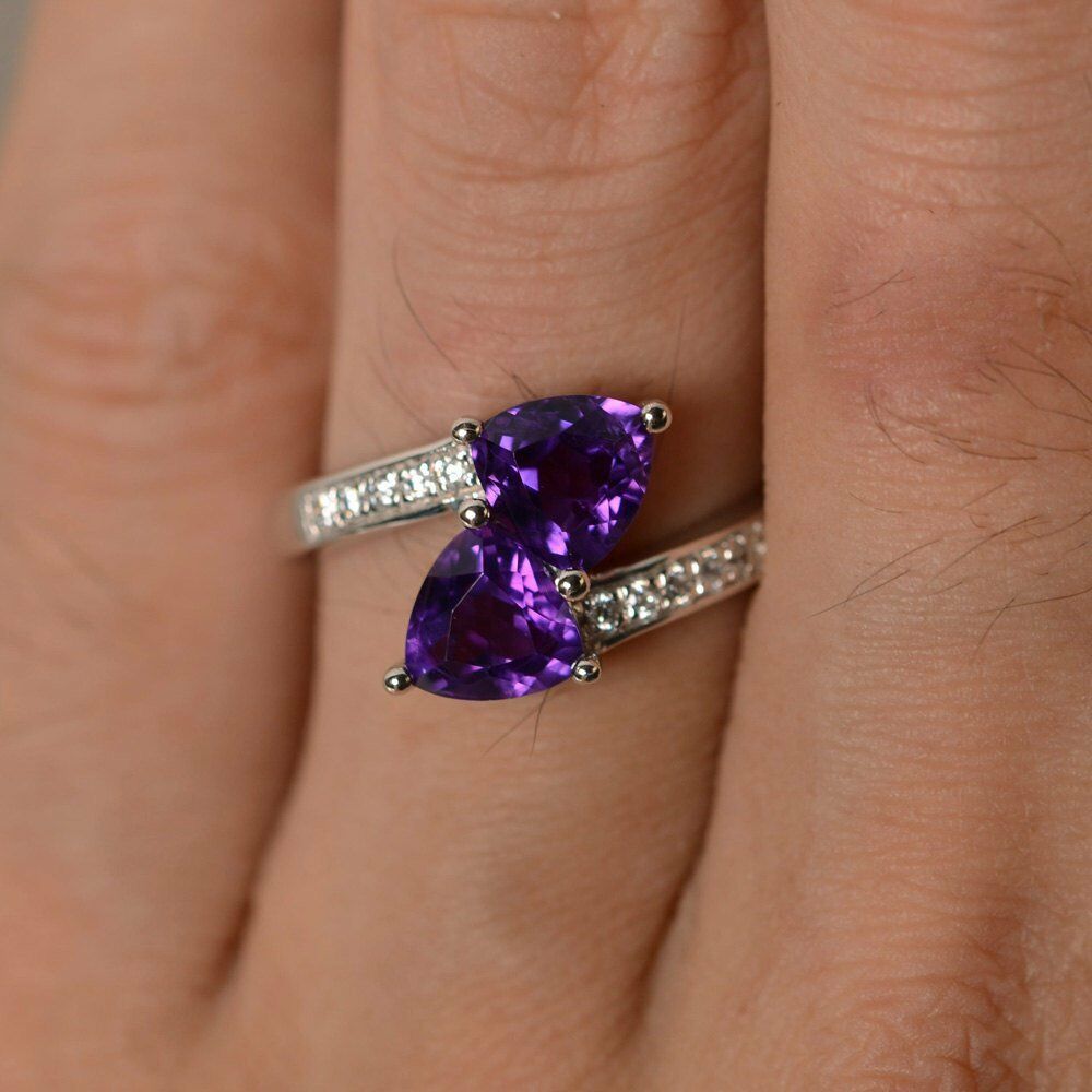 2ct Trillion Cut Purple Amethyst Double Stone Engagement Ring 14k WhiteGold Over