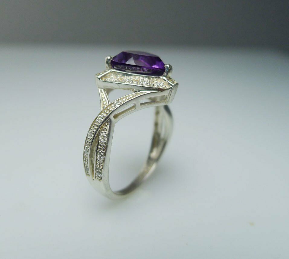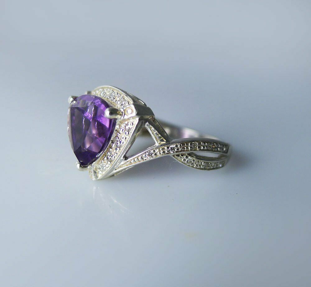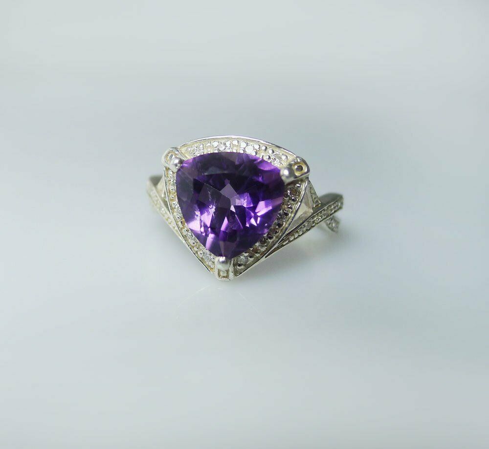 2ct Trillion Cut Purple Amethyst Engagement Ring 14k White Gold Finish Infinity