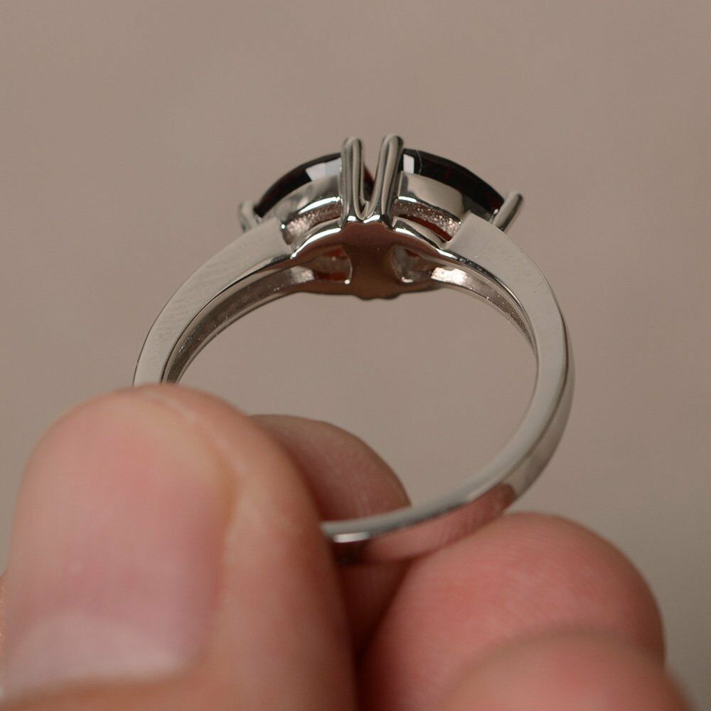 2ct Trillion Cut Red Garnet Two Stone Promise Engagement Ring 14k WhiteGold Over