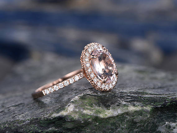 3.2ct Oval Cut Morganite Engagement Ring Halo Diamond Accents 14k Rose Gold Over
