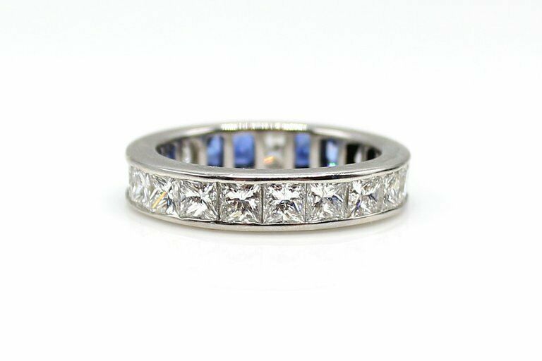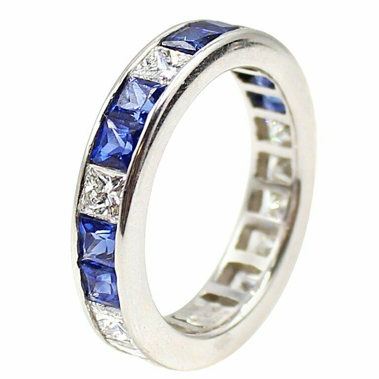 3.2ct Princess Cut Blue Sapphire Channel Set Wedding Band 14k White Gold Finish