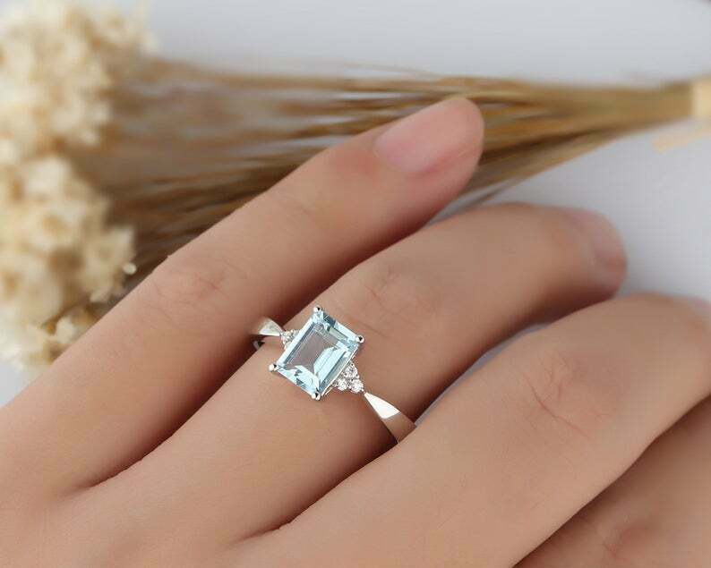 3.4ct Emerald Blue Aquamarine Engagement Ring Diamond Petite 14k White Gold Over