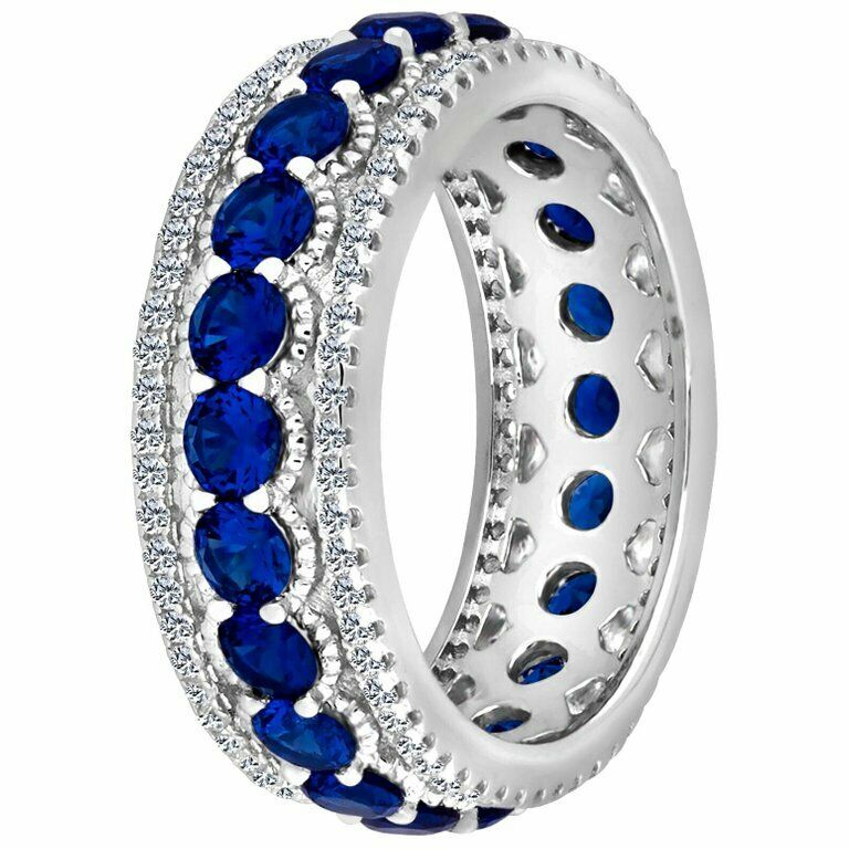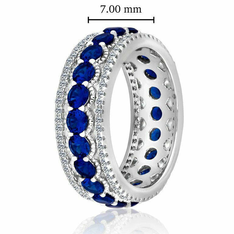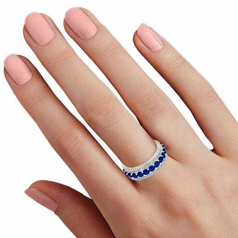 3.4ct Round Cut Blue Sapphire Wedding Band Ring Eternity 14k White Gold Finish