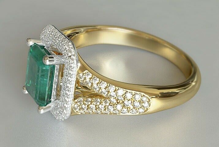 3.5ct Green Emerald Cut Engagement Ring Halo Split Shank 14k Dual Gold Finish