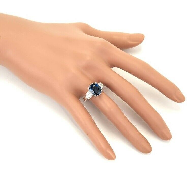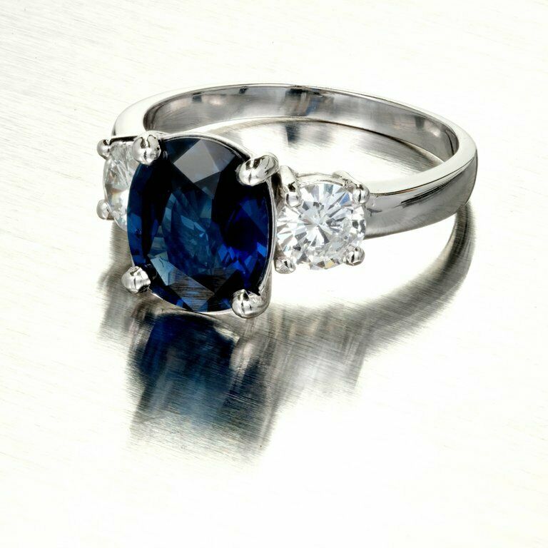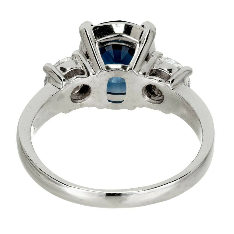 3ct Cushion Cut Blue Sapphire Engagement Ring Diamond Trilogy 14k White Gold Over