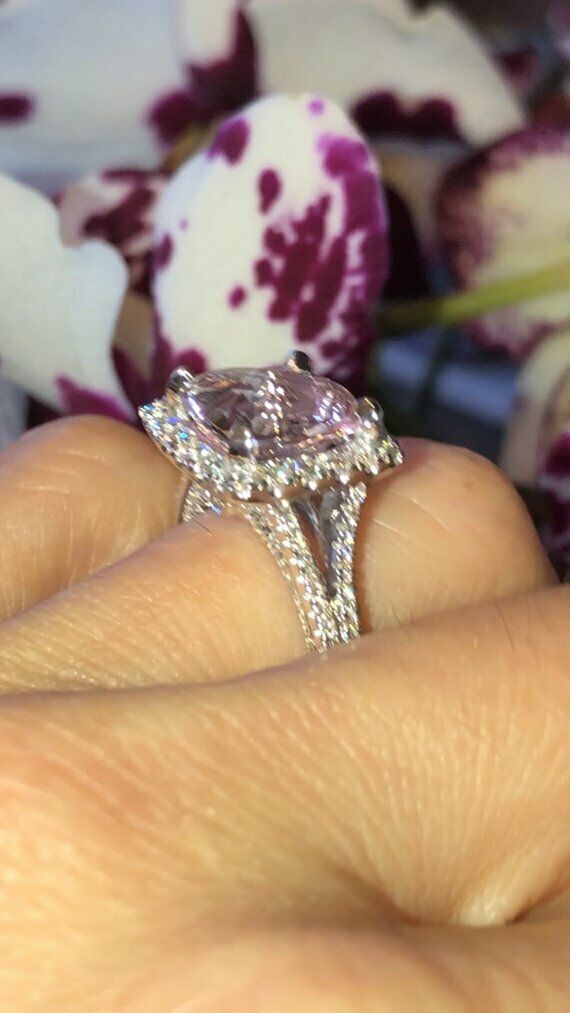 3ct Cushion Cut Peach Morganite Halo Fancy Engagement Ring 14k White Gold Finish