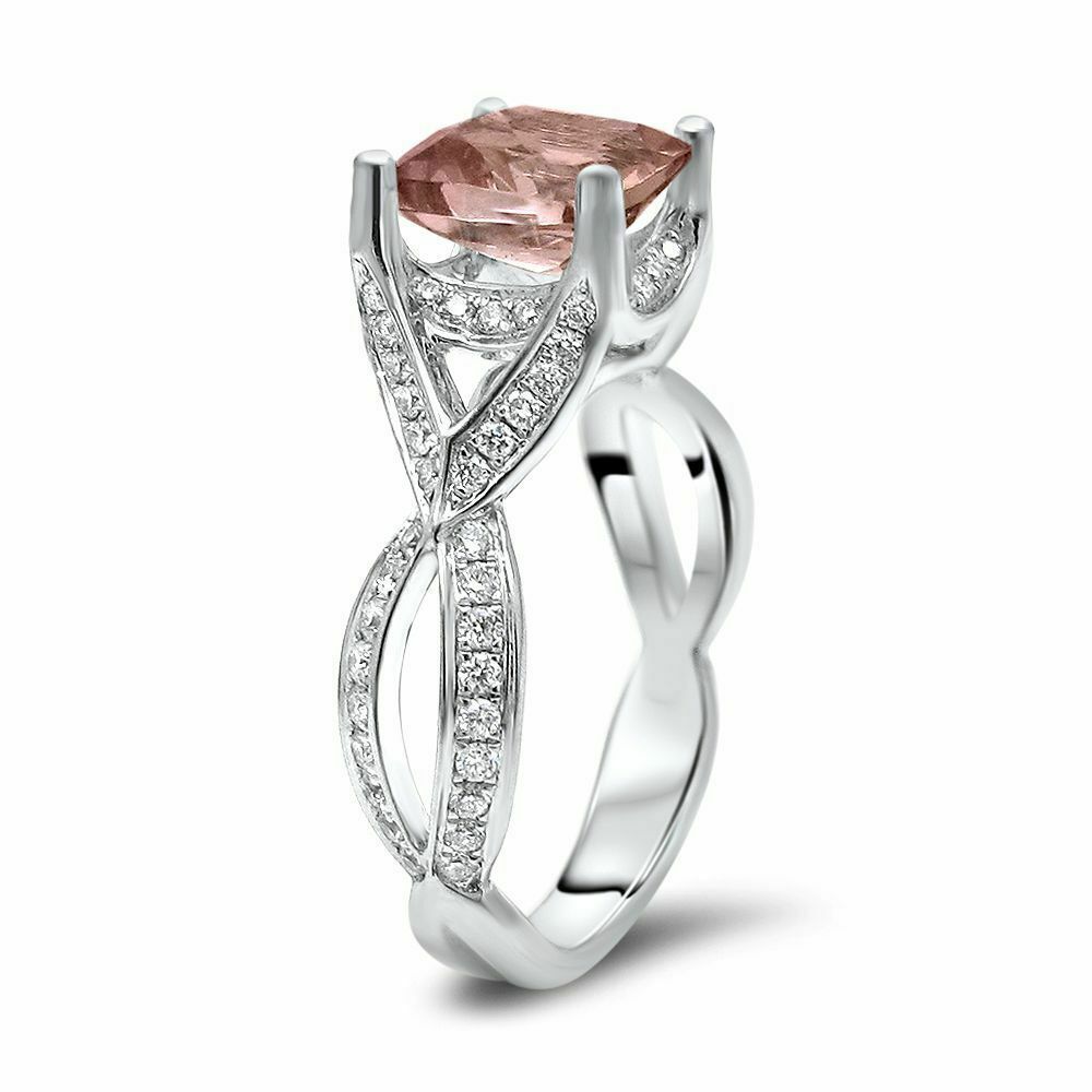 3Ct Cushion Cut Peach Morganite Split Shank Solitaire Ring 14K White Gold Finish