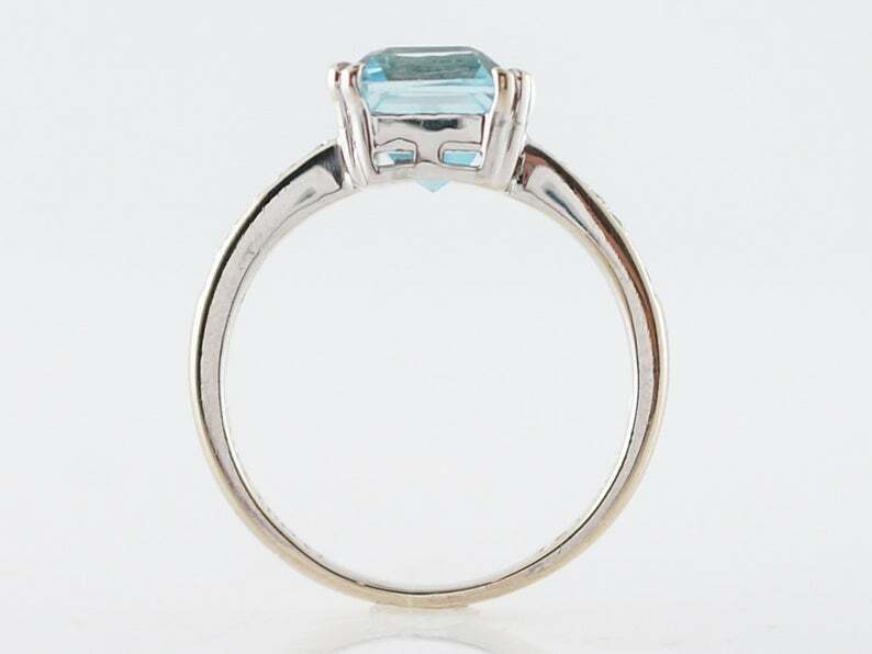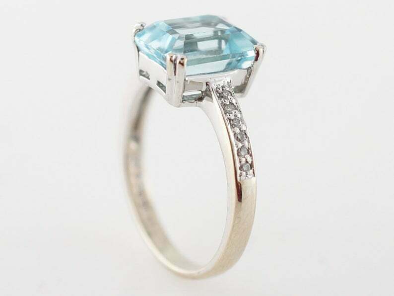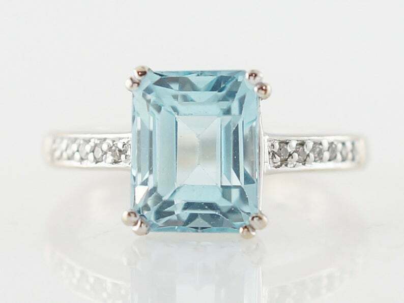 3ct Emerald Cut Blue Aquamarine Accent with Solitaire Ring 14k White Gold Finish