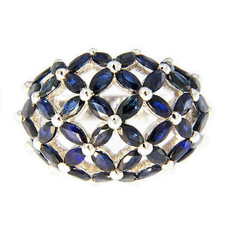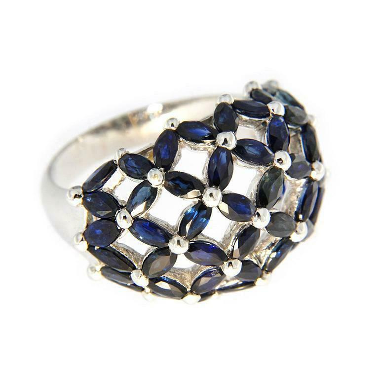 3ct Marquise Cut Blue Sapphire Engagement Ring Floral Cocktail 14k White Gold Finish