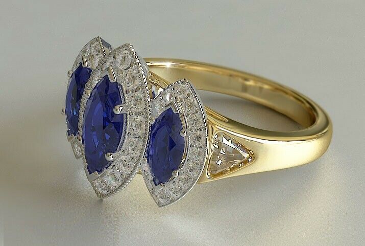 3ct Marquise Cut Blue Sapphire Engagement Ring Halo Vintage 14k Yellow Gold Over