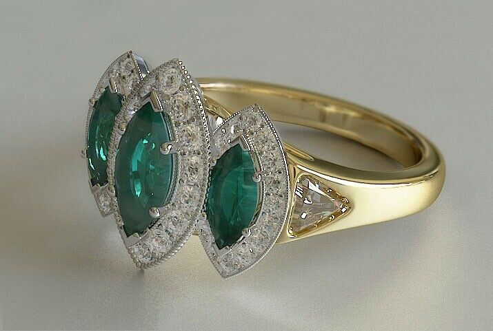 3ct Marquise Cut Green Emerald Engagement Ring Halo Vintage 14k Yellow Gold Over