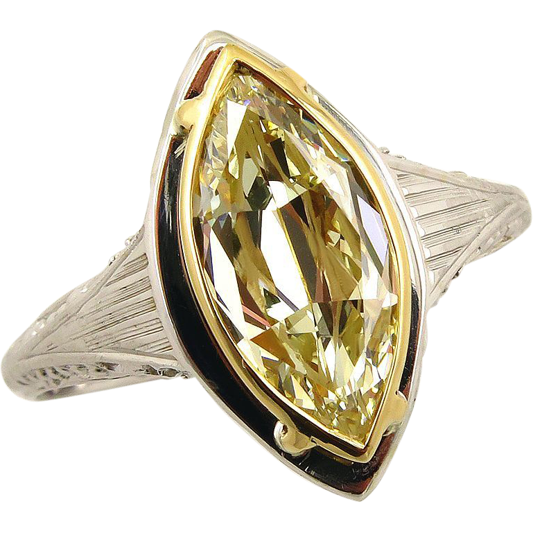 3Ct Marquise Cut Yellow Sapphire Vintage Solitaire Ring 14K Dual Tone Gold Over