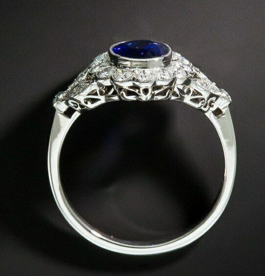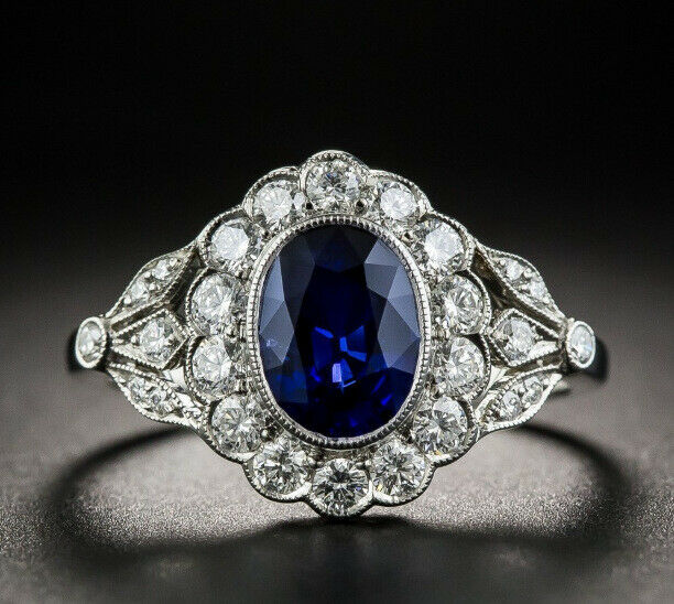 3ct Oval Cut Blue Sapphire Engagement Ring 14k White Gold Over Art Deco Cocktail